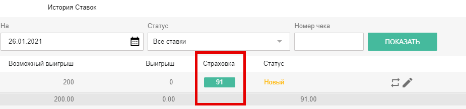 Пользователям БК Ivanbet (Pin-up) предлагают воспользоваться функцией кэшаут — выплаты части вероятного выигрыша до завершения спортивного события. Плюс этой опции в экспресс-ставках — возможность получить выигрыш, если часть событий уже сыграла, а остальные не столь надежны и вы не хотите рисковать. Минус кэшаута в том, что вы получите на счет меньшую сумму, чем в случае победы всего экспресса. В БК «Иванбет» («Пин-ап») опция кэш-аута называется «Страховка». Чтобы ею воспользоваться, откройте вкладку «История ставок» в меню «Профиль» и нажмите кнопку в столбце «Страховка». Цифра на кнопке означает сумму кэш-аута.