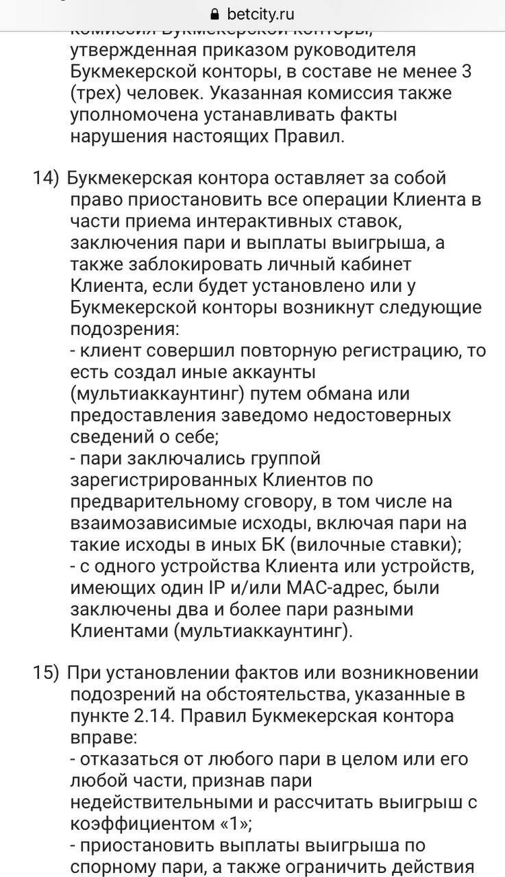 Наиболее радикальный способ, как удалить аккаунт в «Бетсити» полностью — умышленно нарушить правила бк. В пункте 14 раздела «Общие положения» описаны действия игрока, которые считаются мошенническими: мультиаккаунтинг, коллективная игра, осведомлённость об исходах события и другие.