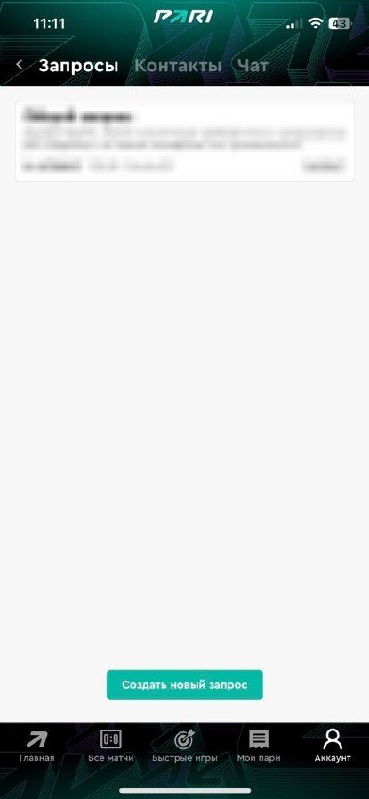 2. Уведомить «Пари» о намерении заблокировать аккаунт через раздел «Запросы» в контактном центре на сайте или в приложении БК.