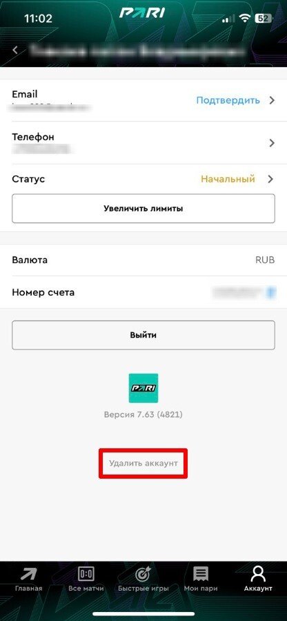 Инструкция по удалению аккаунта в букмекерской конторе «Пари»