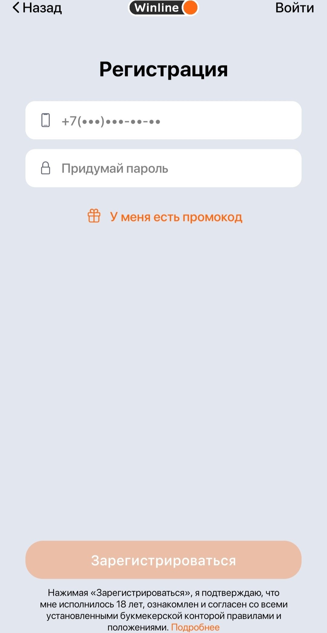 Регистрация в Winline