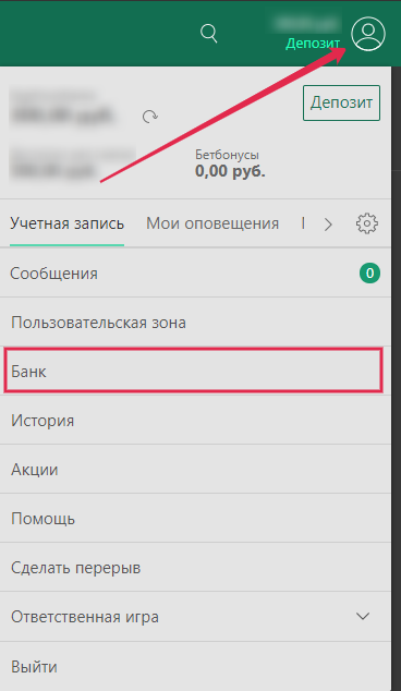 Раздел с денежными переводами находится в профиле игрока. В нем перейдите на вкладку «Банк». Чтобы получить выигрыш на bet365.ru: