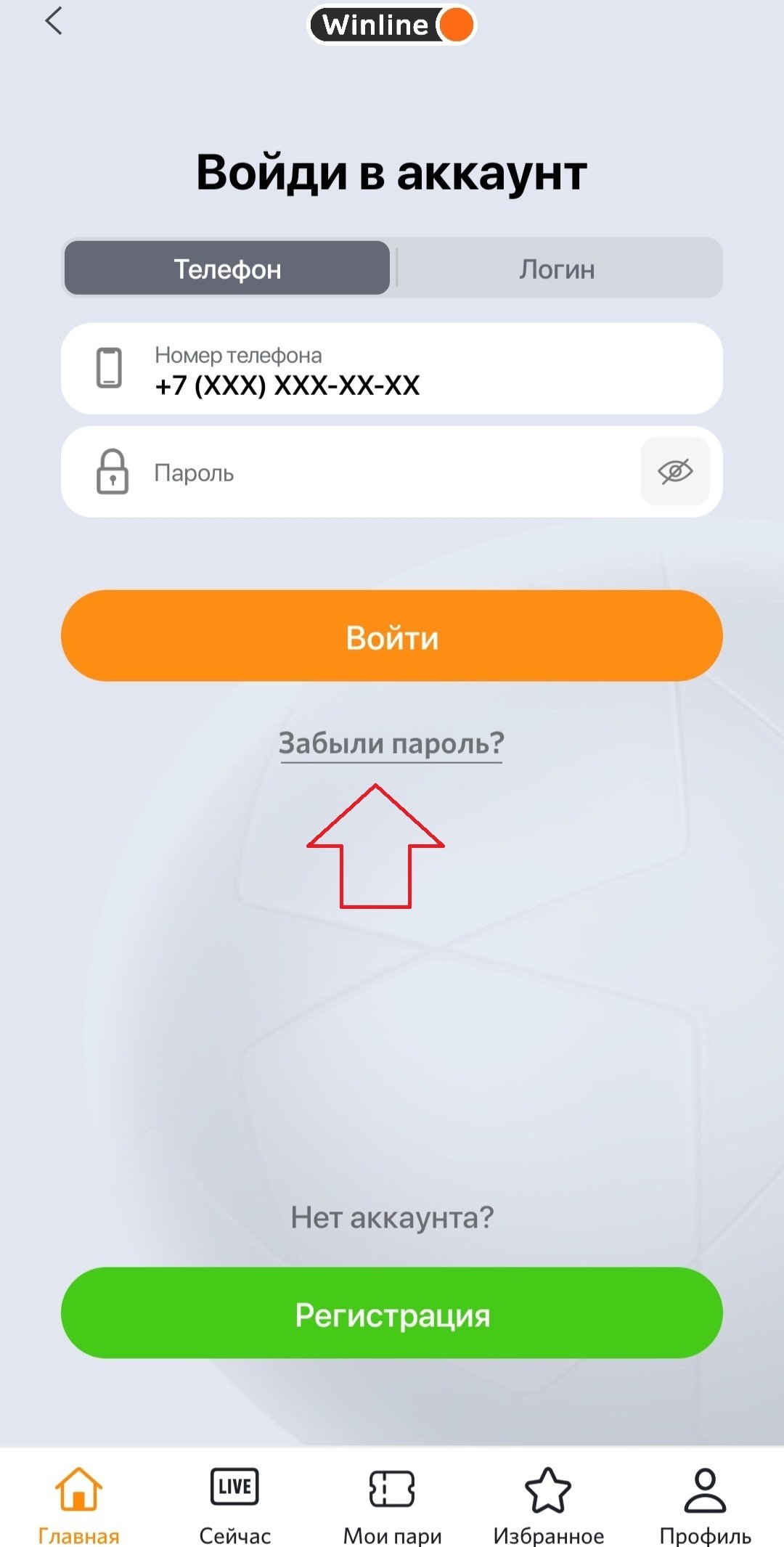 Для восстановления пароля вам потребуется доступ к мобильному номеру, привязанному к вашему счёту. Зайдите на сайт Winline, нажмите кнопку «Войти» в правом верхнем углу, затем выберите «Забыли пароль?».