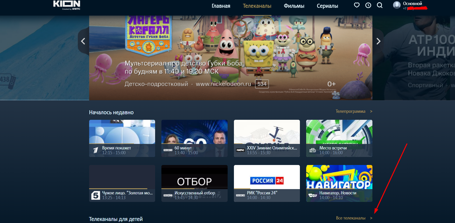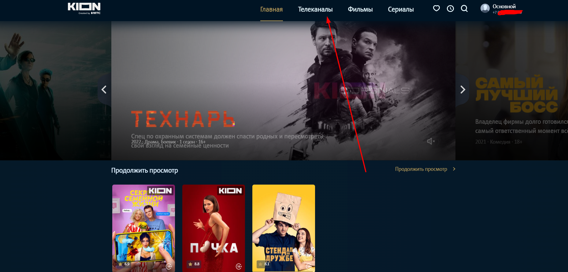 Для регистрации на сайте нужно лишь нажать на кнопку входа справа сверху, вбить мобильный номер и подтвердить его с помощью кода из СМС. После выполнения этих действий у вас будет полноценный аккаунт на KION.
