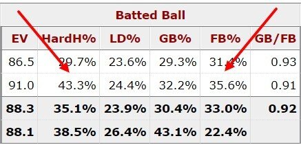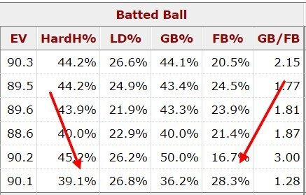 Главный повод для сомнений — в расширенной статистике: у него высокая доля сильного контакта и флай-болов. При этом он все же пропускает меньше 1 хоумрана на 9 иннингов.