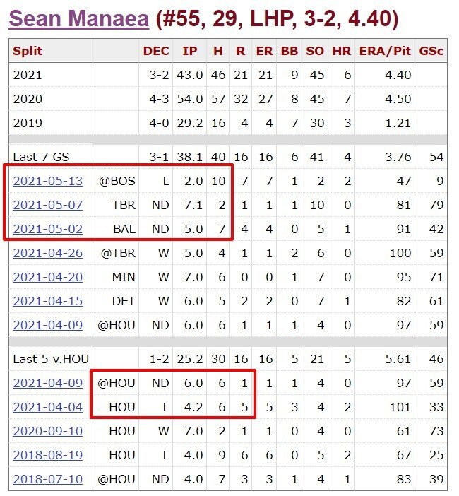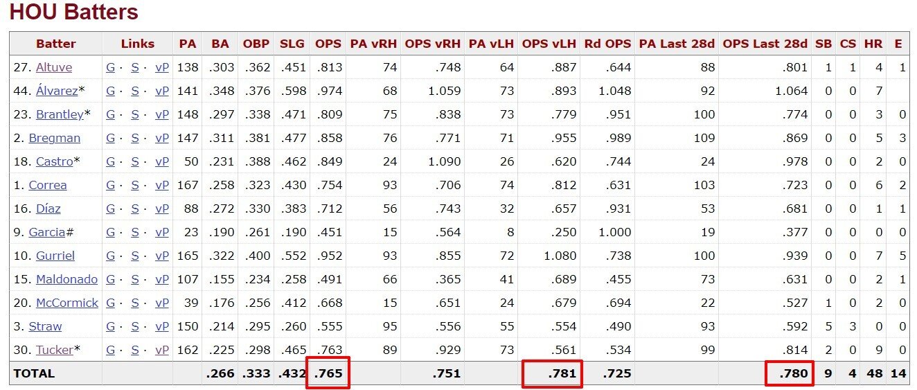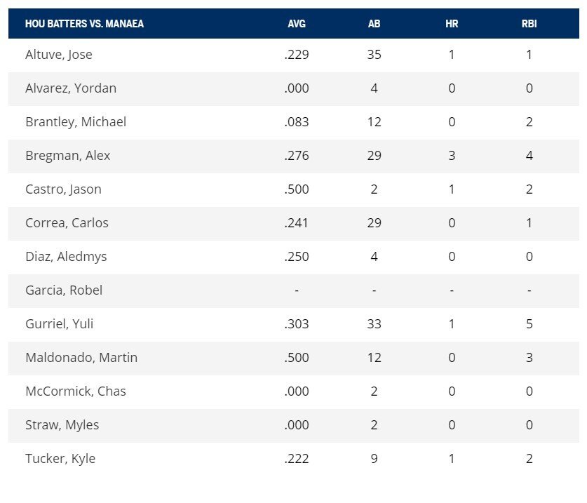 Неудивительно, что с учетом такого начала сезона бэттеры «Астрос» против Мэнайи выглядят значительно сильнее, чем бэттеры «Окленда» против Хавьера.
