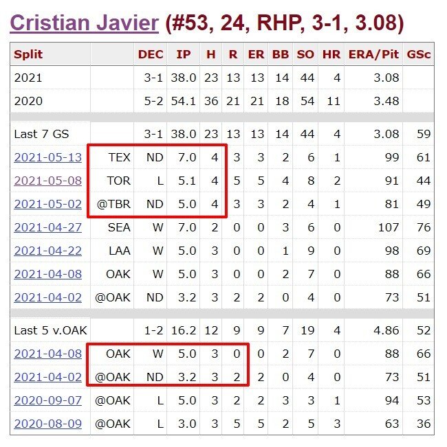 Оба питчера в мае не особенно стабильны, но Хавьер выглядит сильнее.