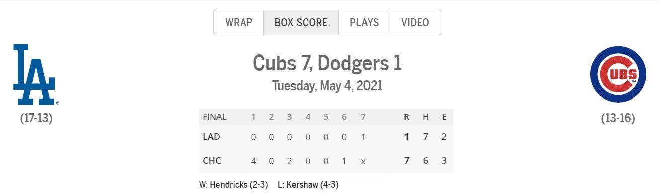 Хорошая иллюстрация — результат матча, который прошел 4 мая 2021 года: «Чикаго Кабс» уверенно обыграли «Лос-Анджелес Доджерс», победителя Мировой Серии-2020.