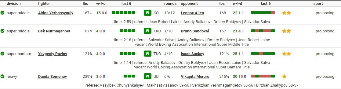 Возьмём, к примеру, вечер бокса, состоявшийся в столице Казахстана Нур-Султане 12 сентября 2021 года: в главном бою вечера местная звезда Айдос Ербосынулы достаточно предсказуемо одержал победу над американцем Ленноксом Алленом.