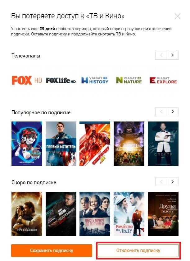 Она отключается в личном кабинете пользователя в разделе «Управление подписками».