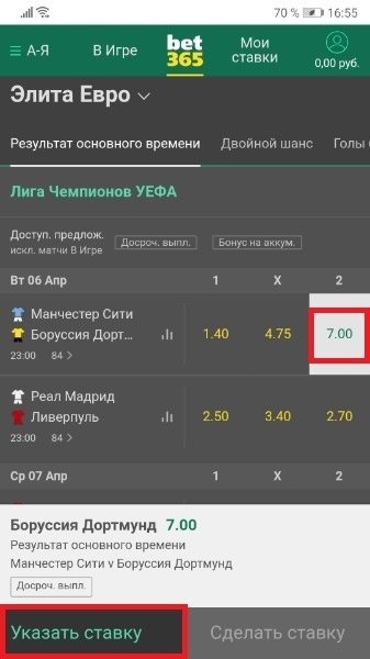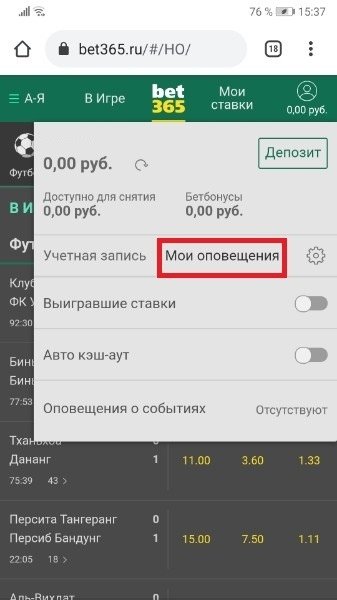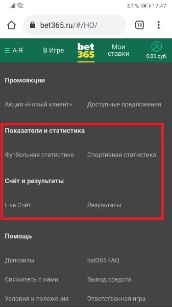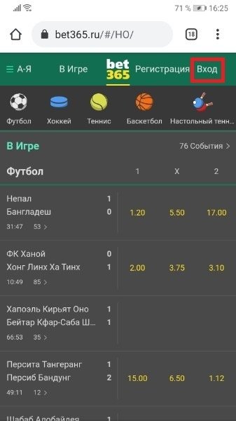 В адресной строке браузера на мобильном устройстве введите bet365.ru. На экране появится адаптированная версия сайта.