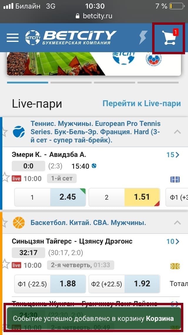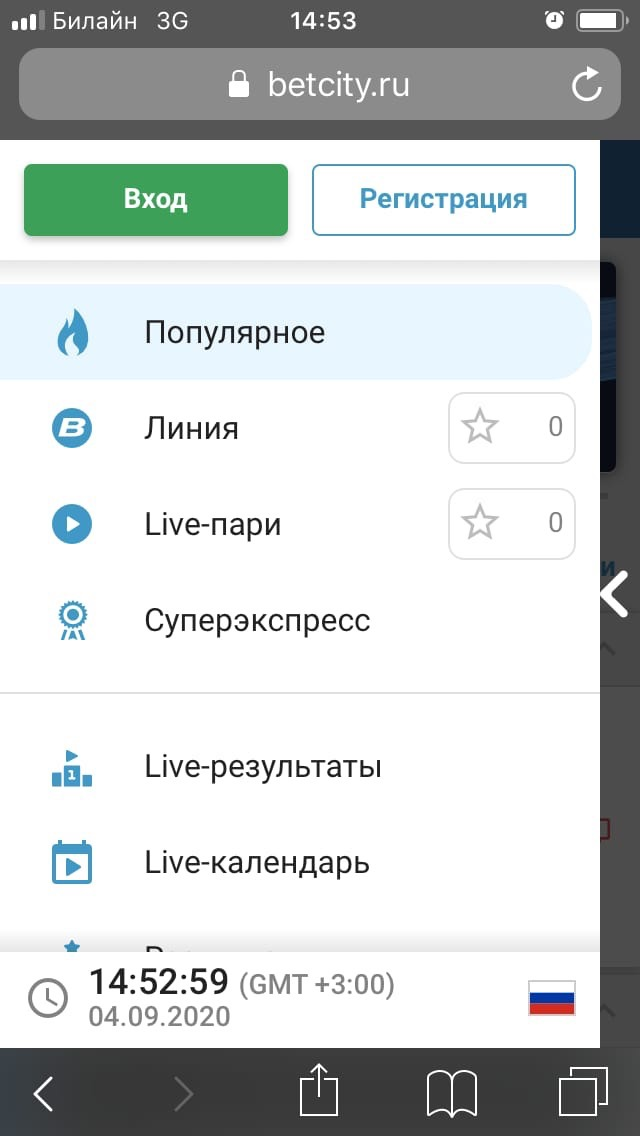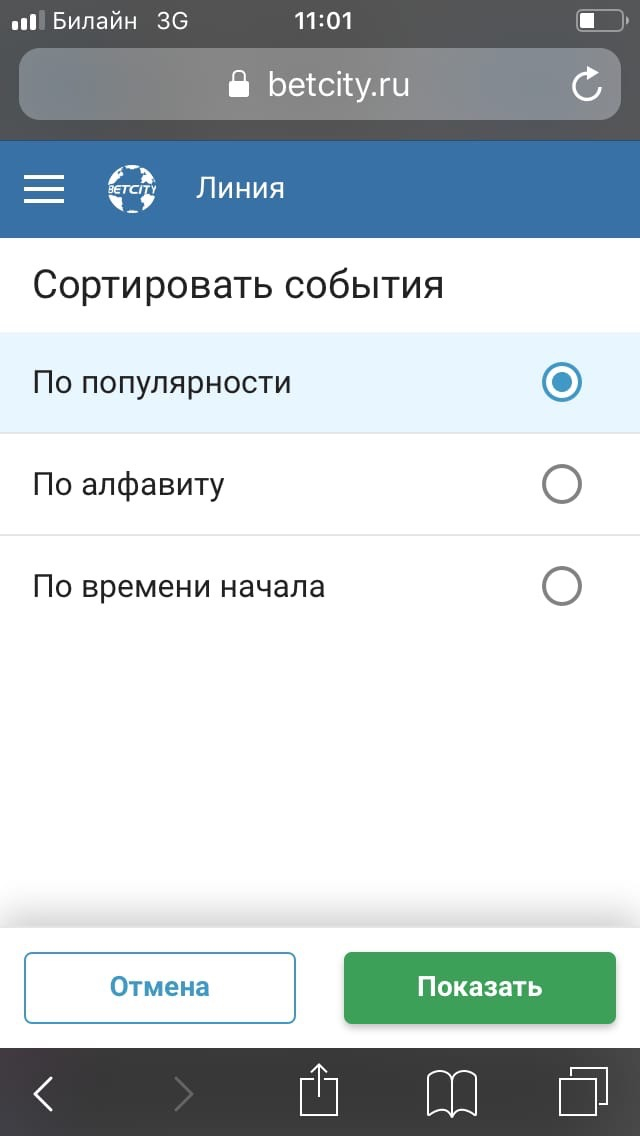 Лайв. На главном экране версии «Бетсити» для телефонов расположен раздел Live. По кнопке Live-пари можно перейти к списку видов спорта в лайве. События можно отфильтровать по популярности, алфавиту или времени начала. Также на странице можно оставить только матчи с видеотрансляциями.