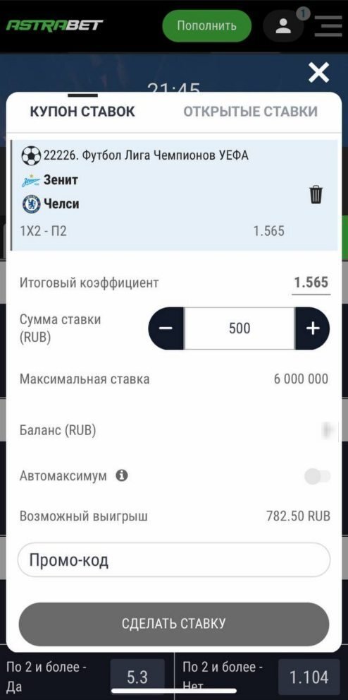 b. Если хотите поставить экспресс или систему, закройте купон и продолжите выбор коэффициентов. Затем вновь откройте купон, введите сумму ставки и подтвердите размещение.