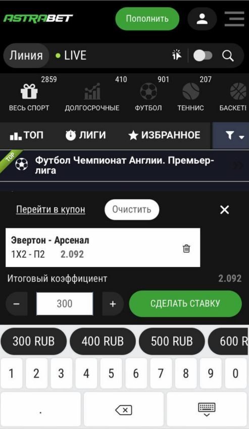 Мобильная версия «Астрабет» не уступает в функционале основному сайту.