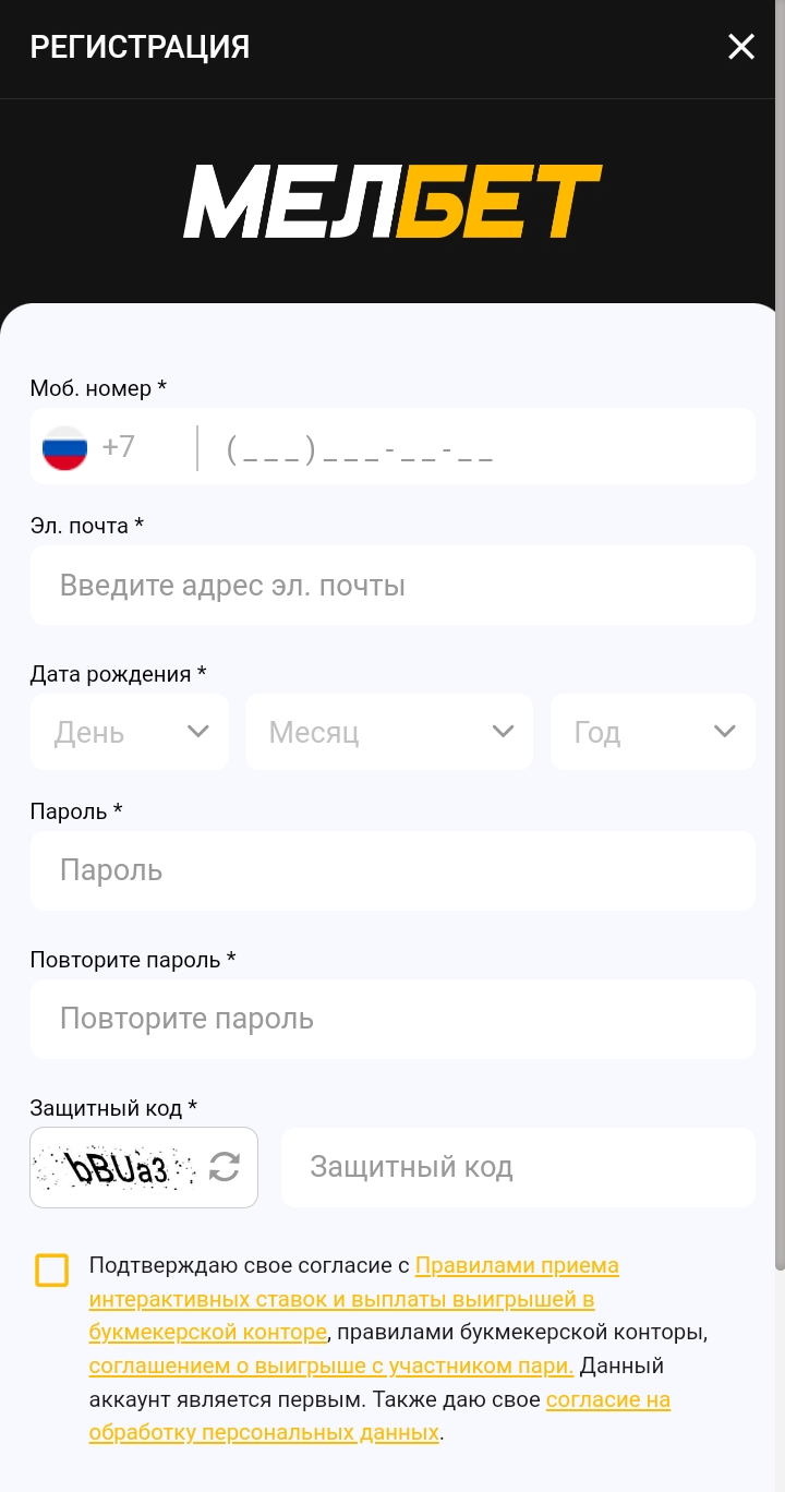После нажатия на «Регистрацию» откроется несколько граф, в которые нужно вписать имя, фамилию, пароль (дважды), электронную почту, номер телефона, дату рождения, промокод (при наличии). Не забудьте подтвердить согласие с правилами БК и обработкой данных.