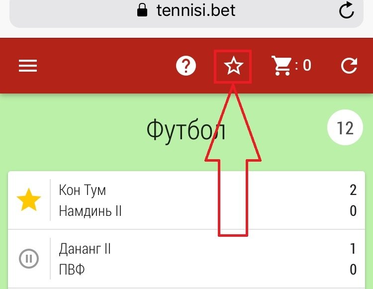 Избранное. Работает для разделов Live и «Анонс live» и размещается в верхней части экрана. Сюда пользователь помещает игры, за ходом которых намерен следить в отдельном блоке. Для добавления в «Избранное» нужно долгое нажатие на матч.