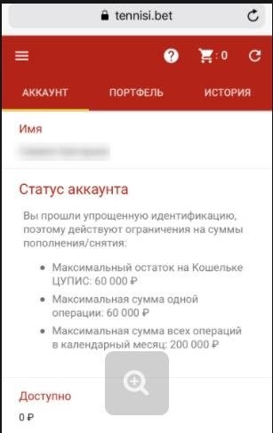 В «Аккаунте» представлены информация по уровню идентификации, счету, а также место для ввода промокода и справка о том, как получить или потратить бонусы. В «Портфеле» — сведения о рассчитанных и текущих ставках, а в «Истории» — операции по вводу и выводу средств.