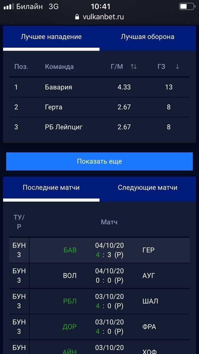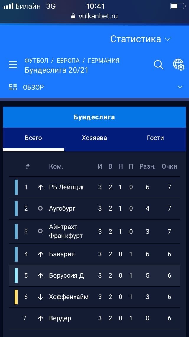 Статистика и результаты. Текущие и итоговые результаты событий, таблицы чемпионатов, количество забитых командами голов, ближайшие игры тура. Есть поиск, фильтр по видам спорта и лигам.