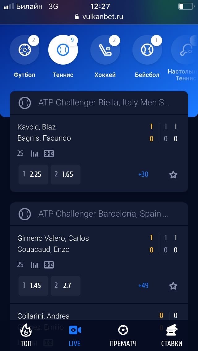 Популярное (ТОП). В этом разделе букмекер отображает события, которые начнутся в скором времени. Их можно отсортировать по видам спорта. Чем раньше начинается игра, тем выше она расположена.Live события. На странице представлены матчи, на которые букмекер обновляет котировки и принимает ставки по ходу встречи. Игрок может выбирать игры «здесь и сейчас», параллельно делая ставки. Есть фильтр по видам спорта, события с матч-центром указаны в противостоянии.