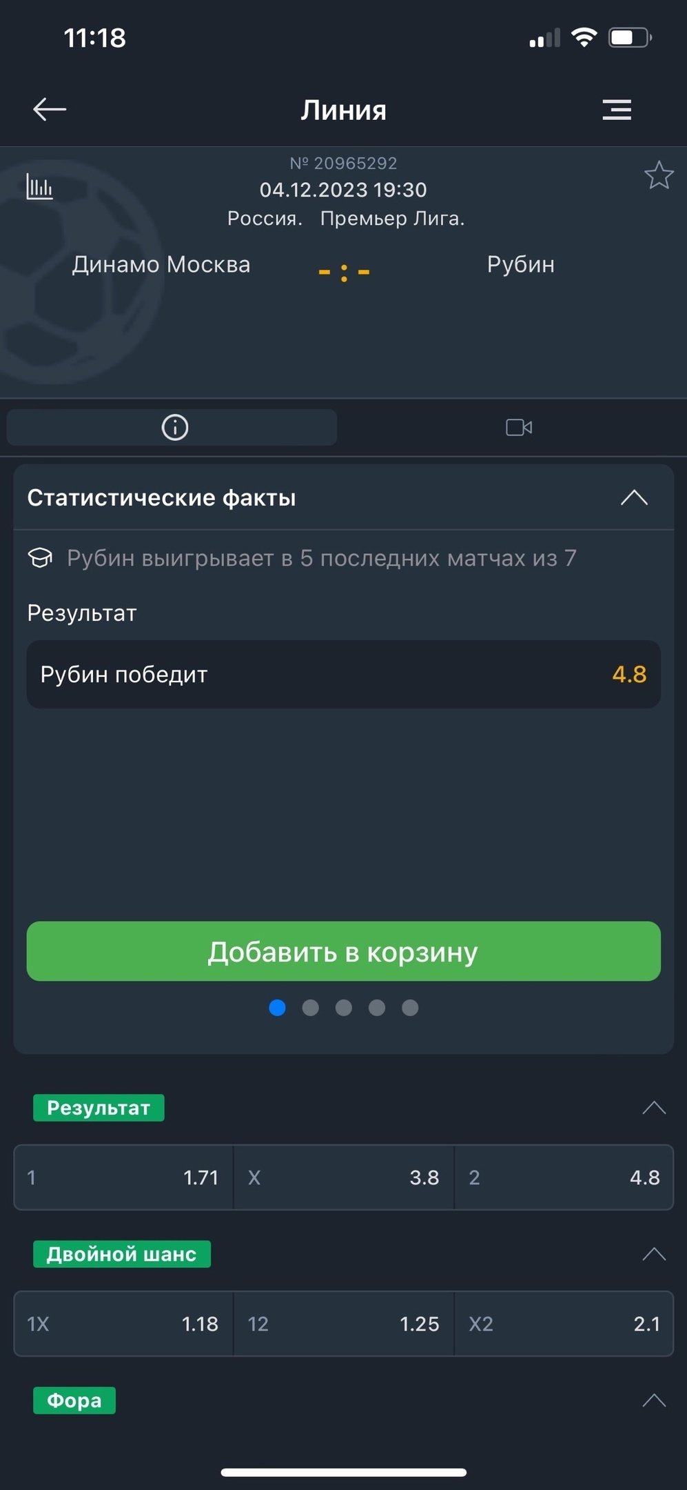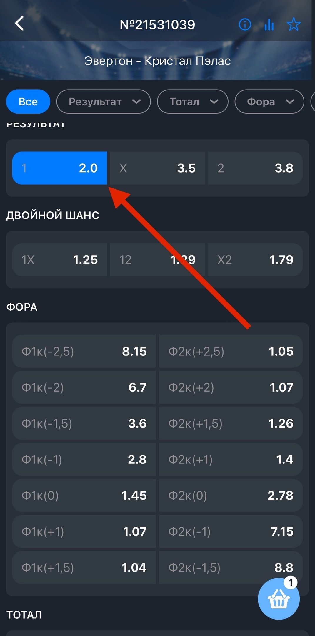 Нажмите на коэффициент, соответствующий ставке, она попадет в «Корзину».