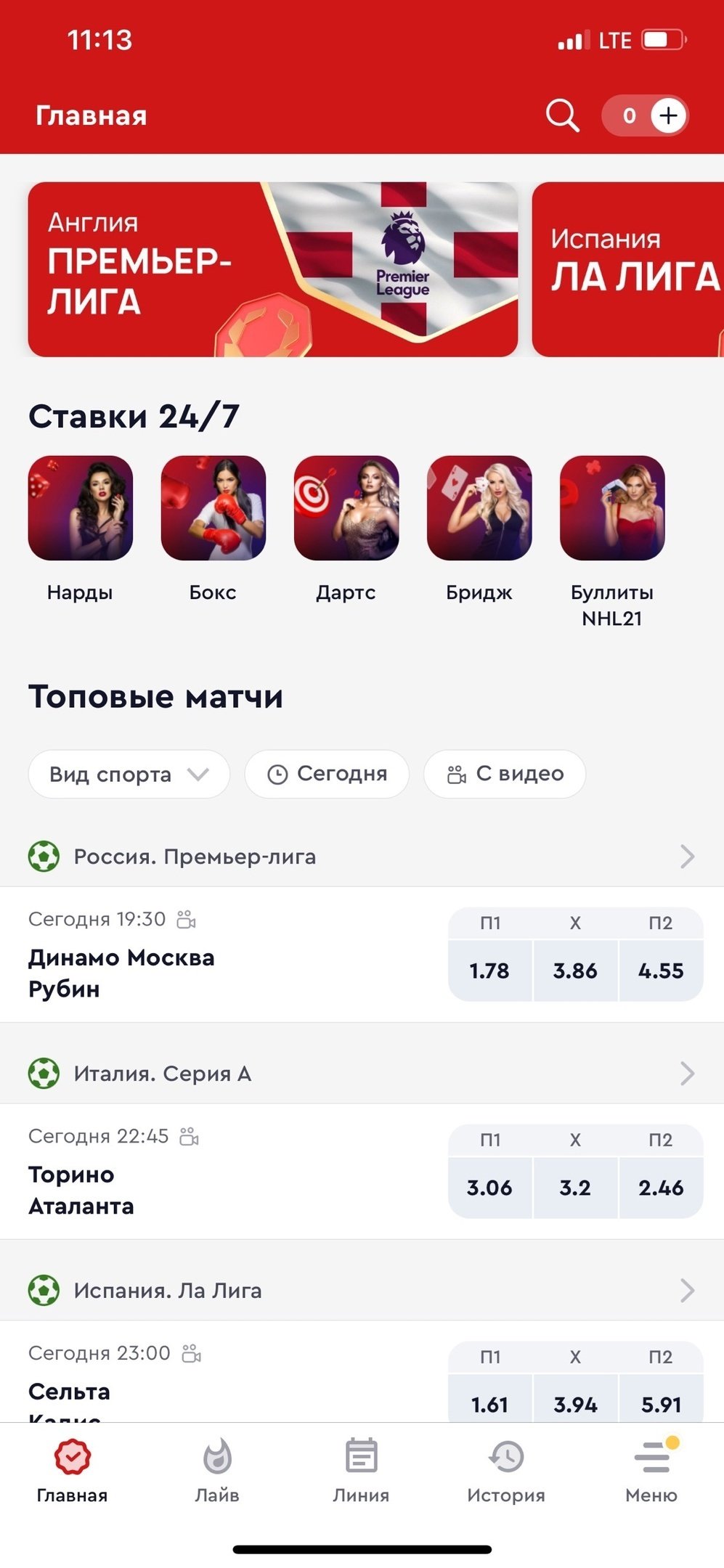 Чтобы сделать ставку в приложении «Олимп» для iOS или Андроид: