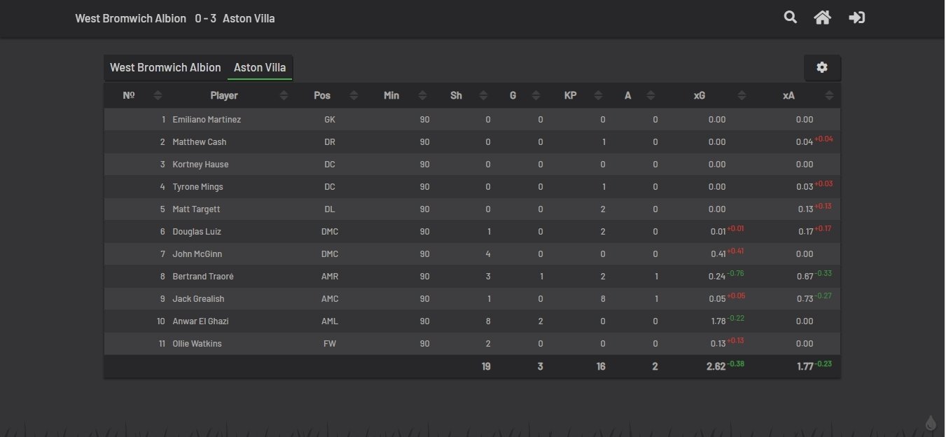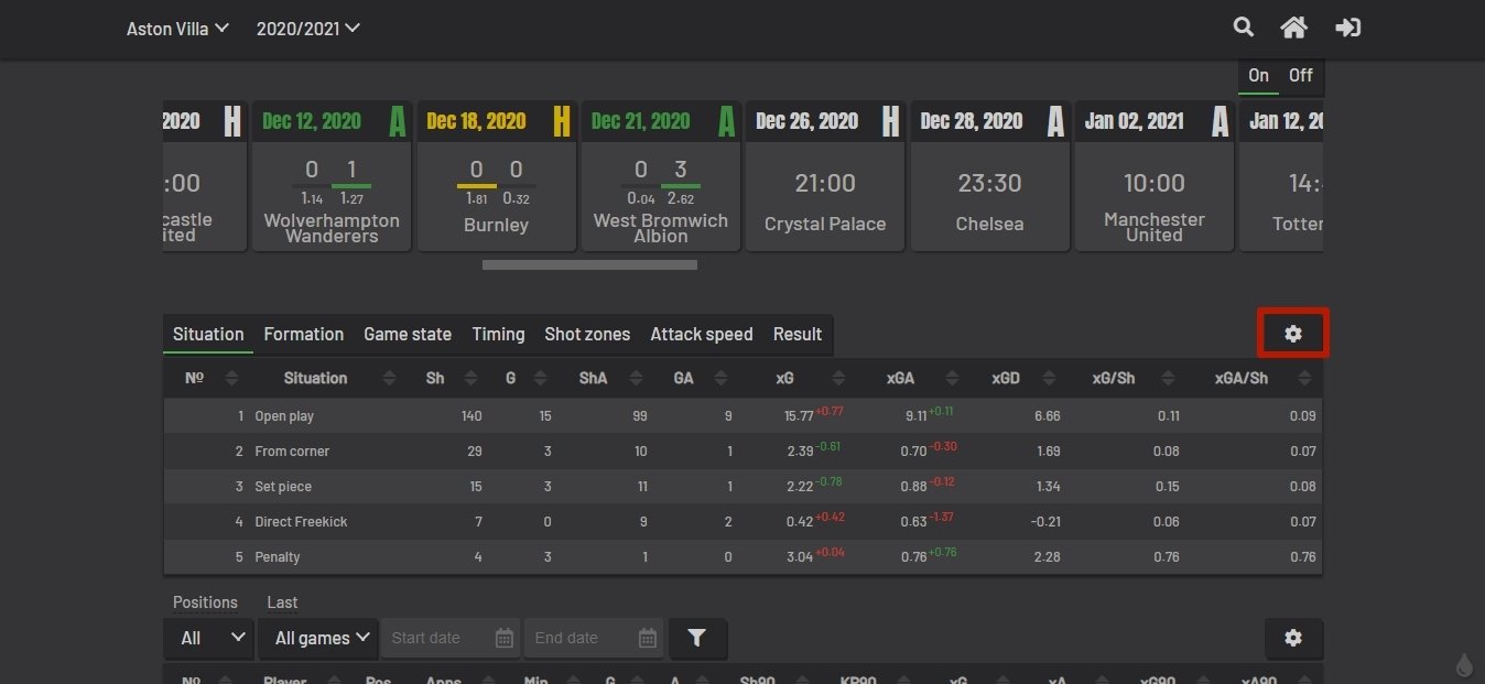 Умение завершать атаки можно оценить в графе xG. Выделенная красным или зеленым цифра в столбце с этим параметром указывает на разницу между количеством реально забитых и ожидаемых голов.