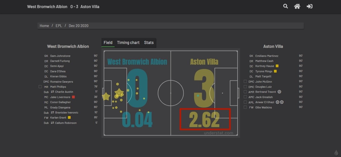 В зачет для коэффициентов Expected Goals идут только зафиксированные удары в сторону ворот, а опасные атаки без завершающего удара игнорируются.