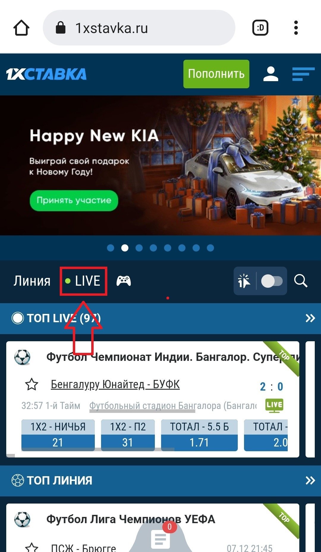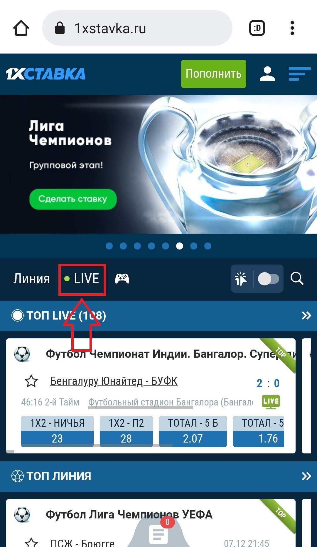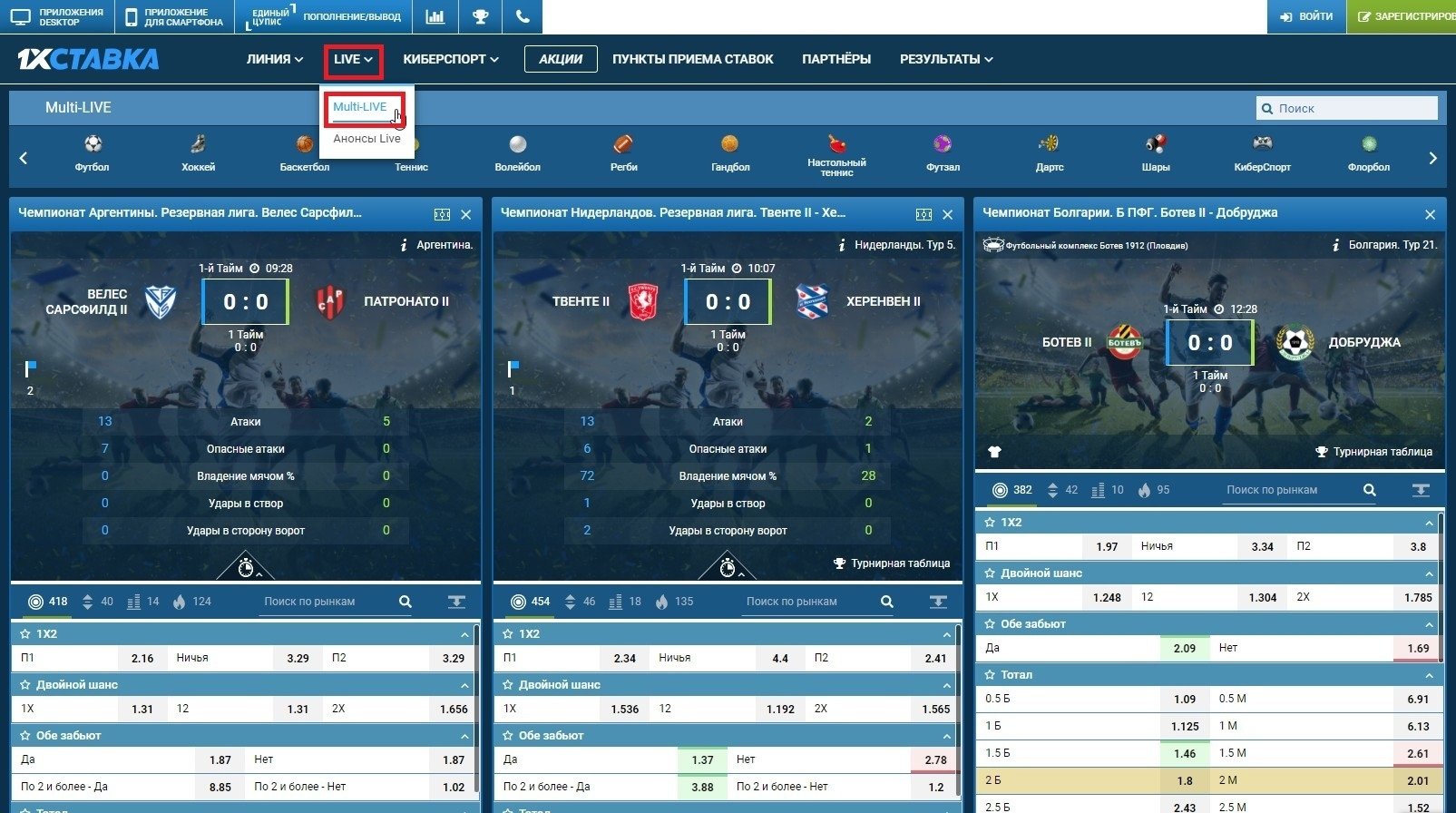 Как можно было сделать live-ставку на сайте БК «1хСтавка»