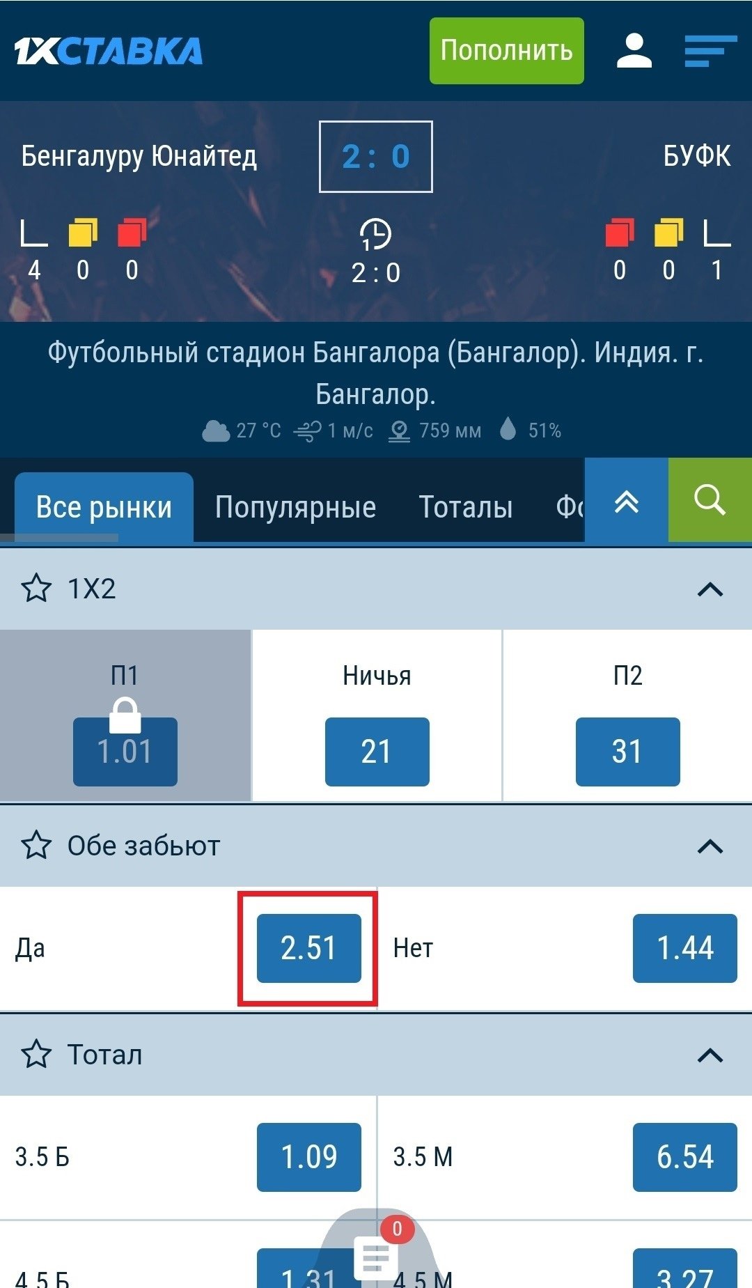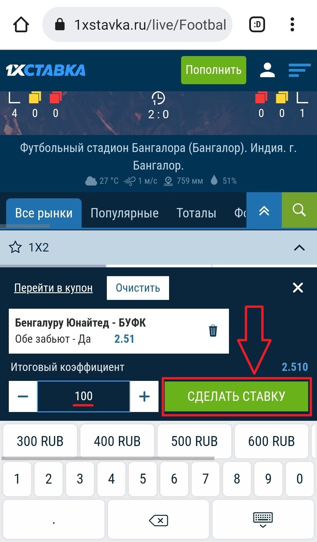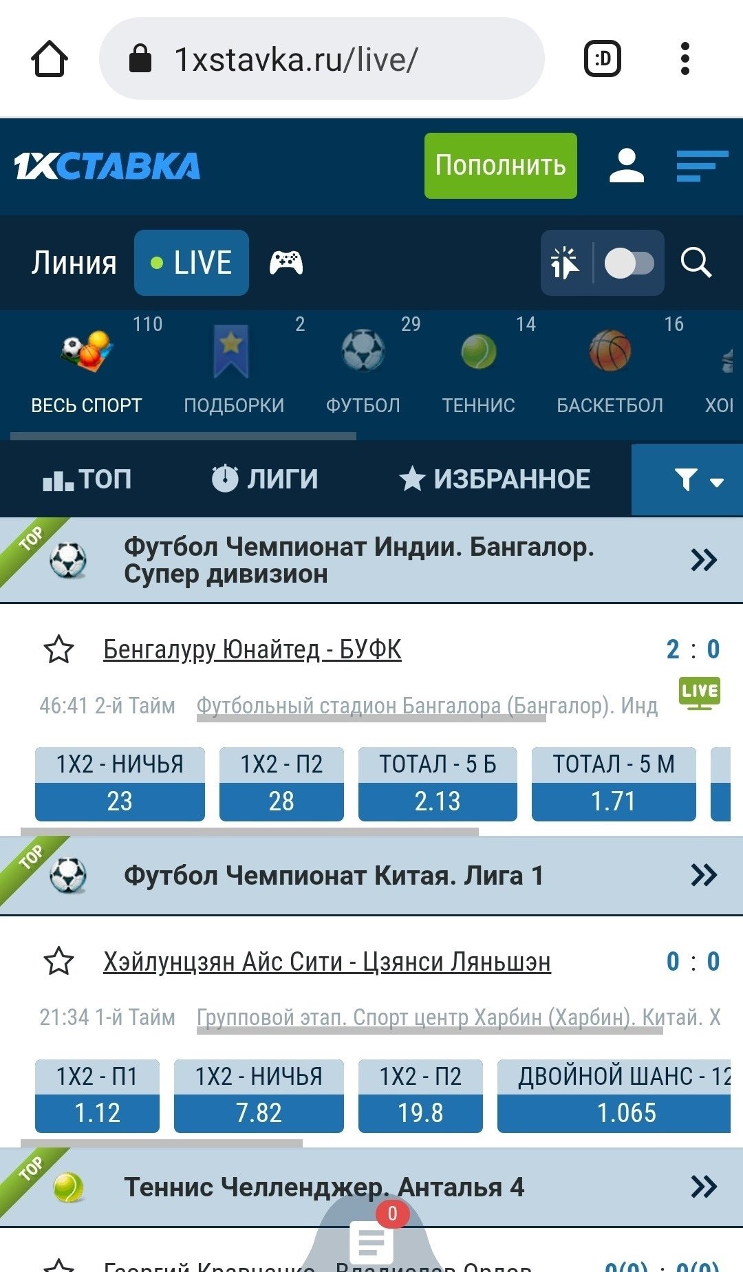 Как можно было сделать live-ставку на сайте БК «1хСтавка»