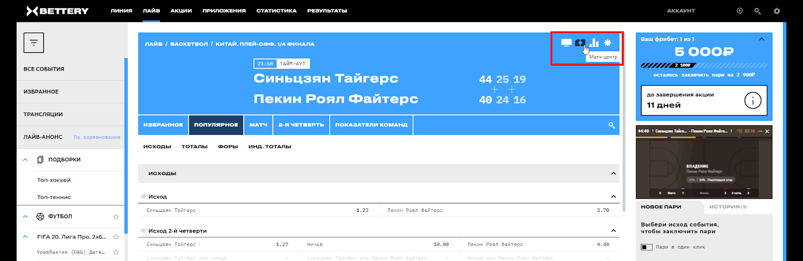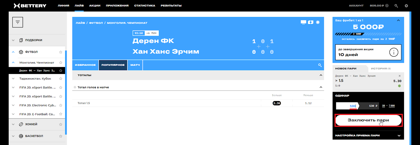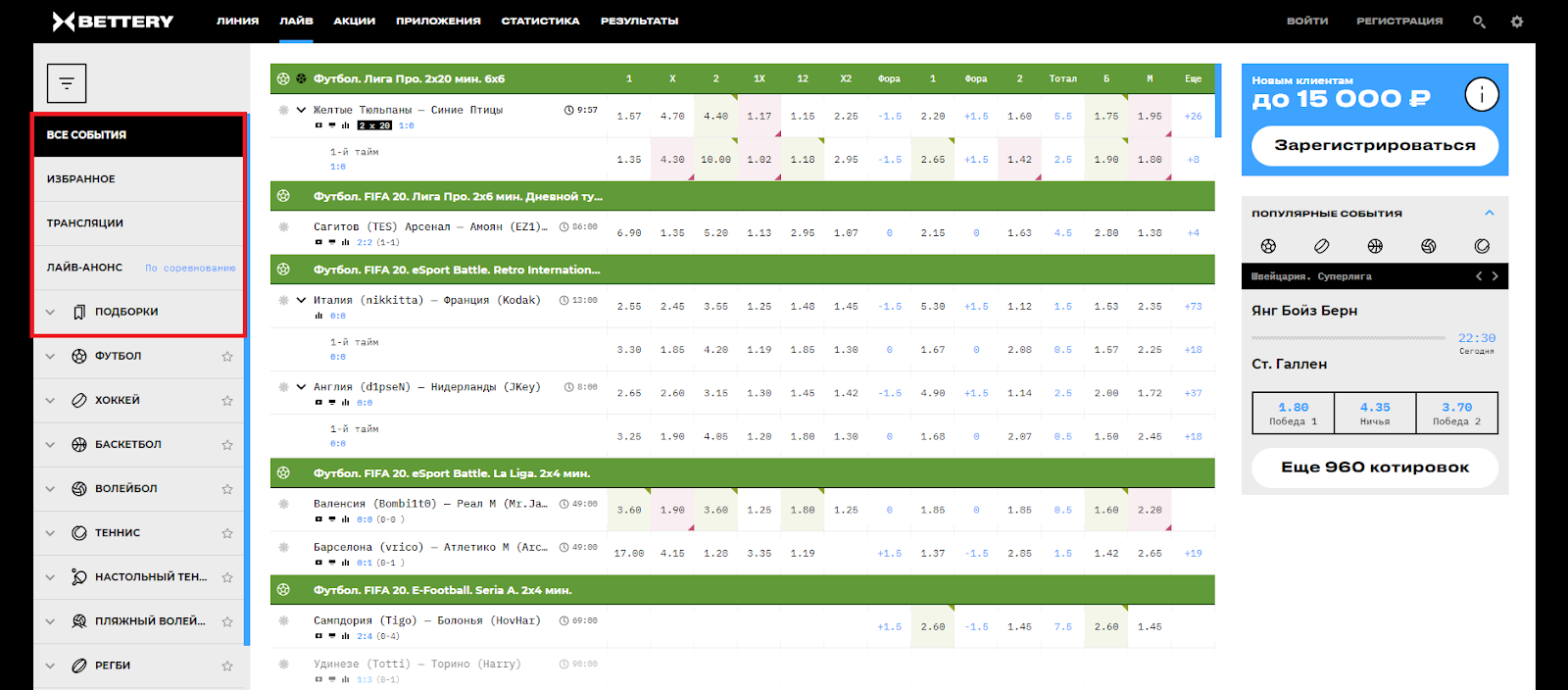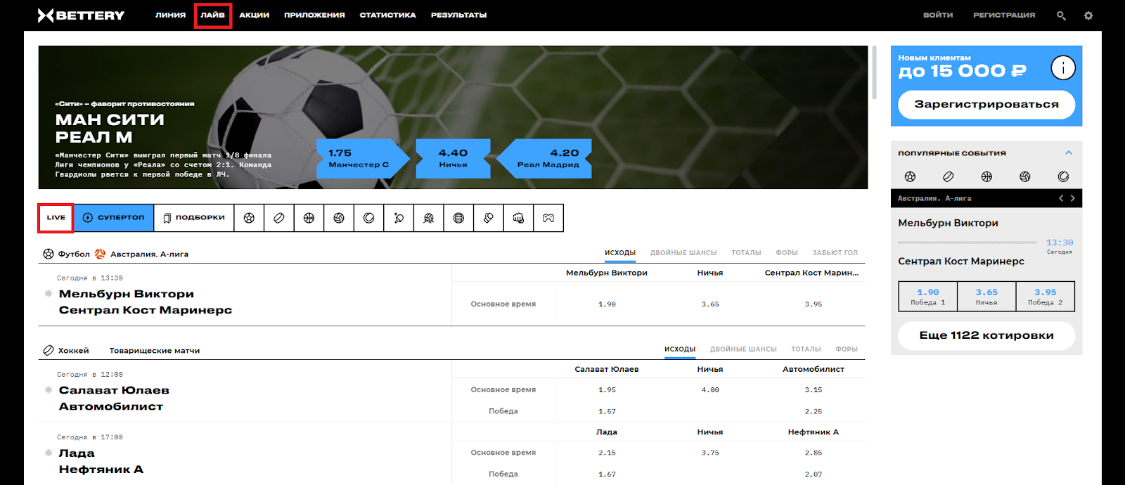 Как сделать live-ставку на сайте БК БЕТТЕРИ