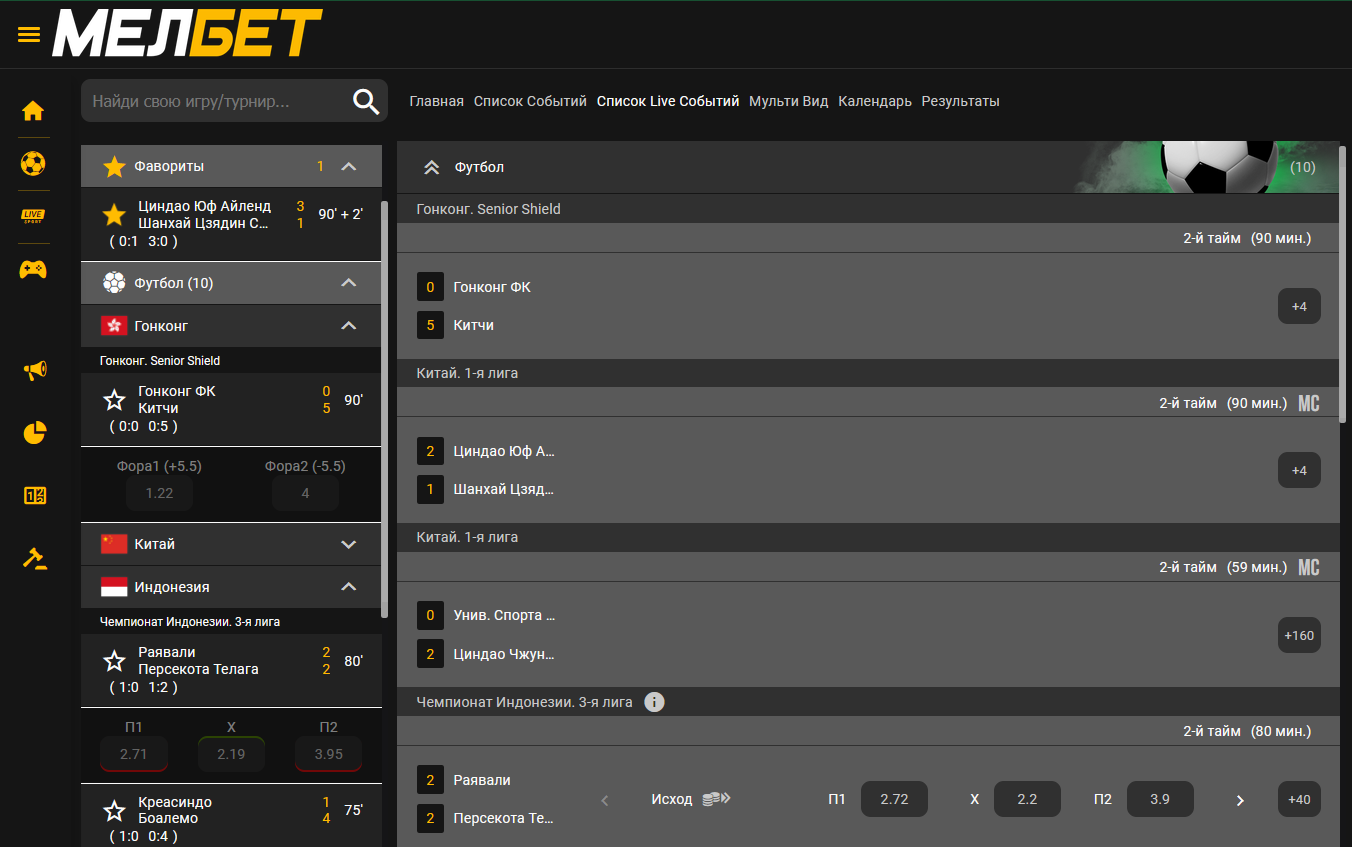В этой статье мы расскажем о live-ставках на спорт в БК «Мелбет», которая входит в тройку лидеров рейтинга качества live-сервиса на Legalbet. Все в деталях: где найти лайв-ставки, как заключать пари быстрее и как смотреть трансляции. Оценим предложение ставок в реальном времени на самые популярные виды спорта: футбол, хоккей, теннис и баскетбол.