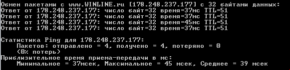 Сначала надо убедиться, что у вас Интернет работает как надо. Найдите в поиске приложение «Командная строка» (cmd.exe) и введите ping www.winline.ru. Эта команда проверит, получает ли ваш компьютер отклик от сайта. В обычных условиях результат работы выглядит так: