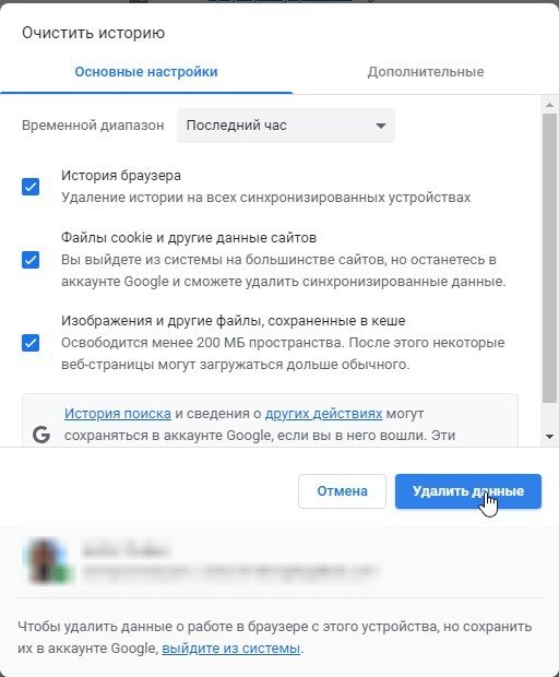 Кеш и файлы cookie в браузере можно очистить целиком, а можно для отдельного сайта. Приведём рецепт для самого популярного браузера Chrome: