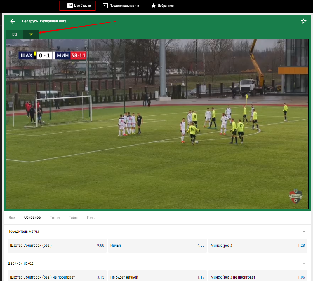 После запуска видео пользователь может отрегулировать звук, растянуть изображение на весь экран или сделать ставку в лайве на выбранное противостояние.