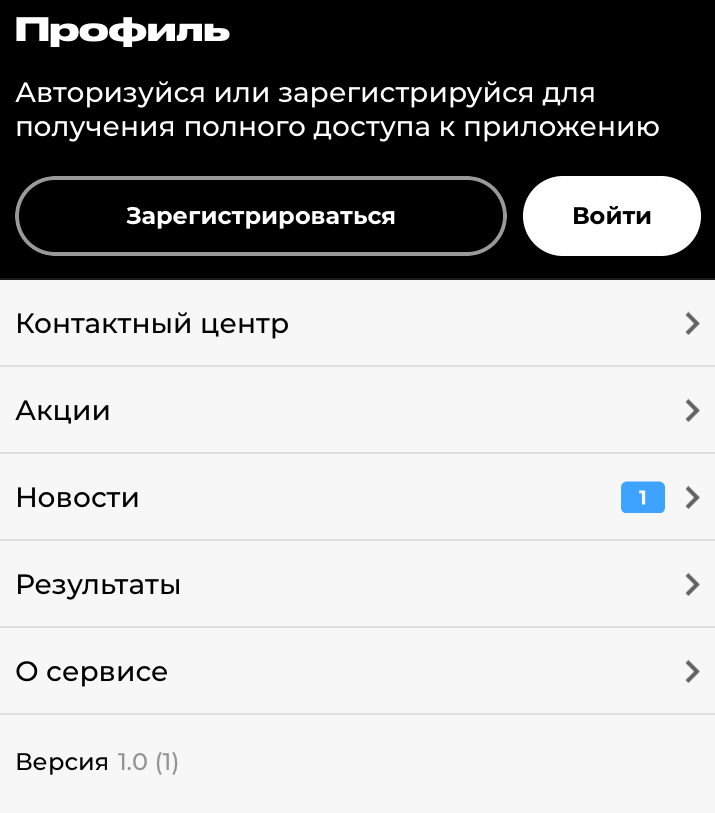 Для регистрации в приложении зайдите в раздел «Профиль» в правом нижнем углу.