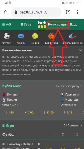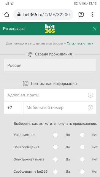 Чтобы попасть на мобильную версию сайта букмекерской конторы bet365, откройте браузер мобильного устройства и впишите в адресной строке bet365.ru. Ссылка на страницу регистрации также располагается в правом верхнем углу страницы. Процесс создания аккаунта такой же, как и на браузерном сайте.