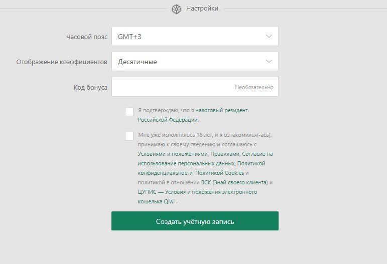 В нижней части окна регистрации нужно подтвердить, что вы являетесь налоговым резидентом РФ. Здесь же необходимо принять правила букмекерской конторы bet365, дать согласие на использование персональных данных. Для этого проставьте галочки в соответствующих окнах. После нажмите кнопку «Создать учетную запись».