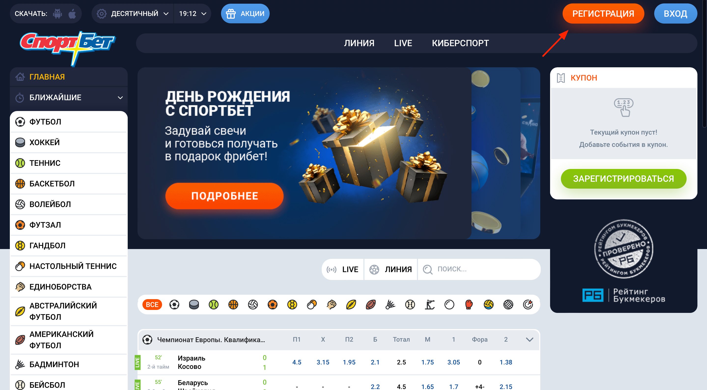 Регистрация в БК Sportbet