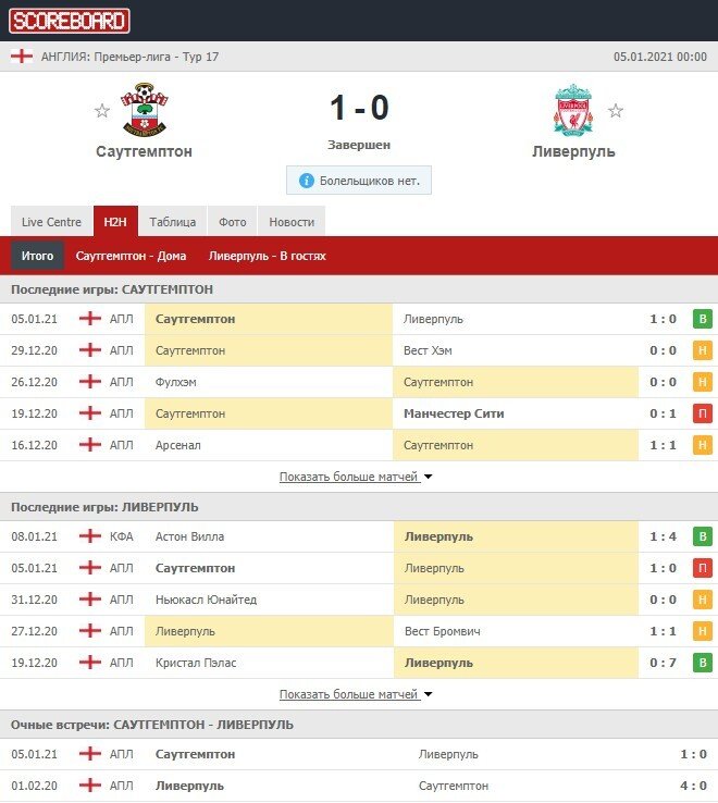 H2H. Последние матчи соперников в турнире и результаты последних противостояний.