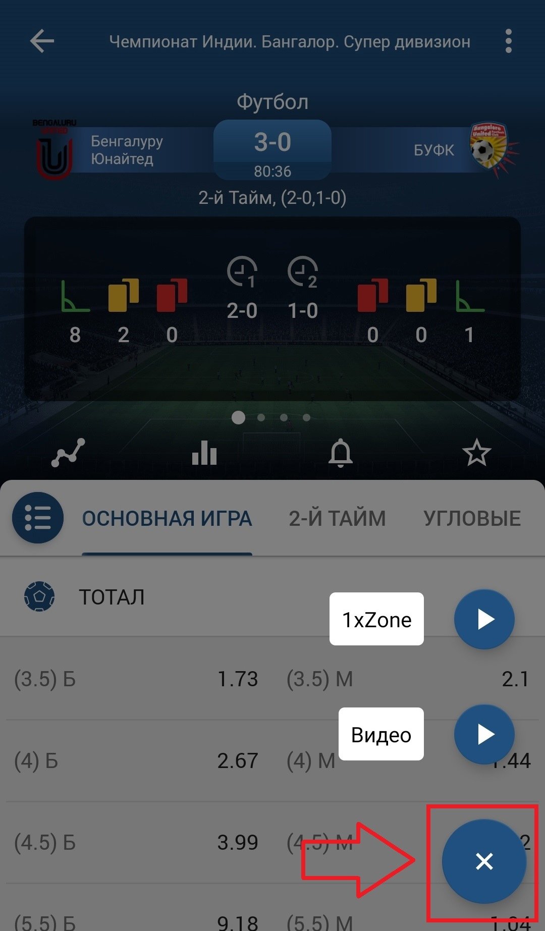 Для большинства событий в лайве были доступны видеотрансляции или трансляции в виде анимированной инфографики 1хZone: кнопки «Видео» и 1хZone находились на вкладке матча.