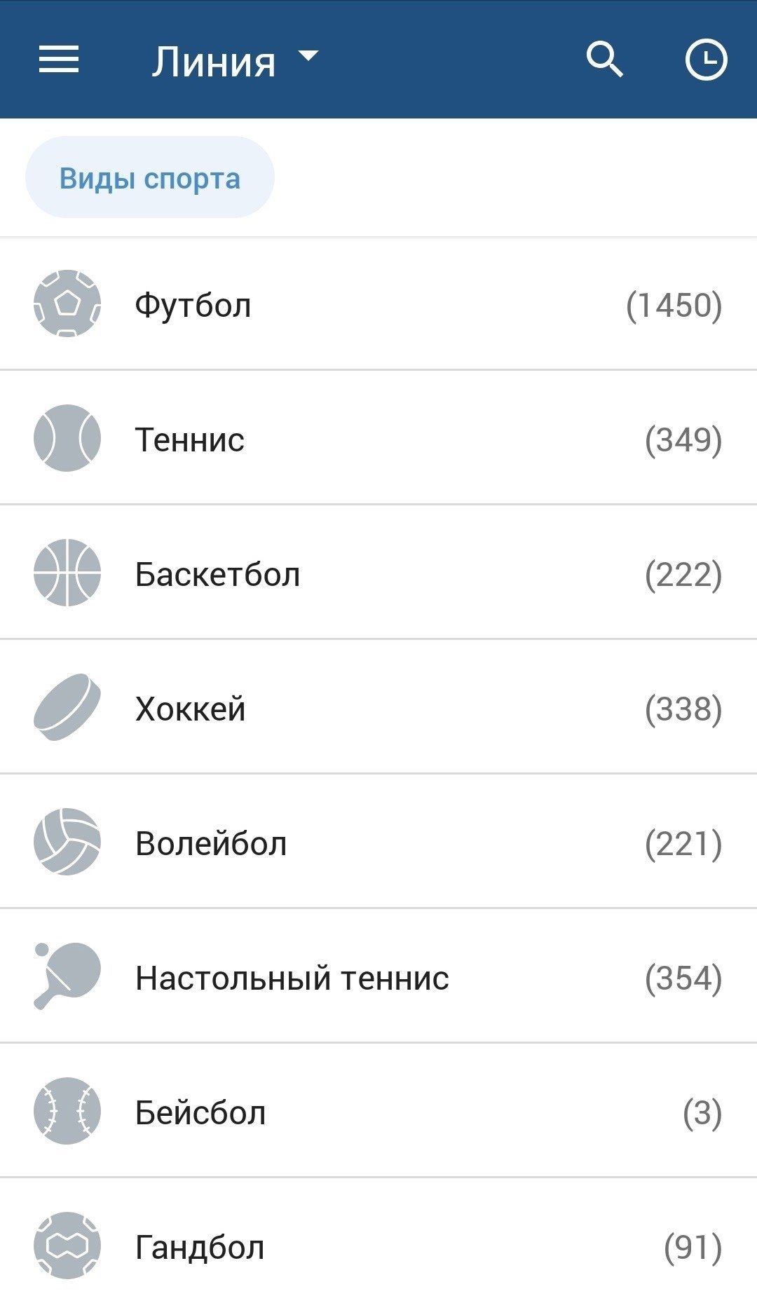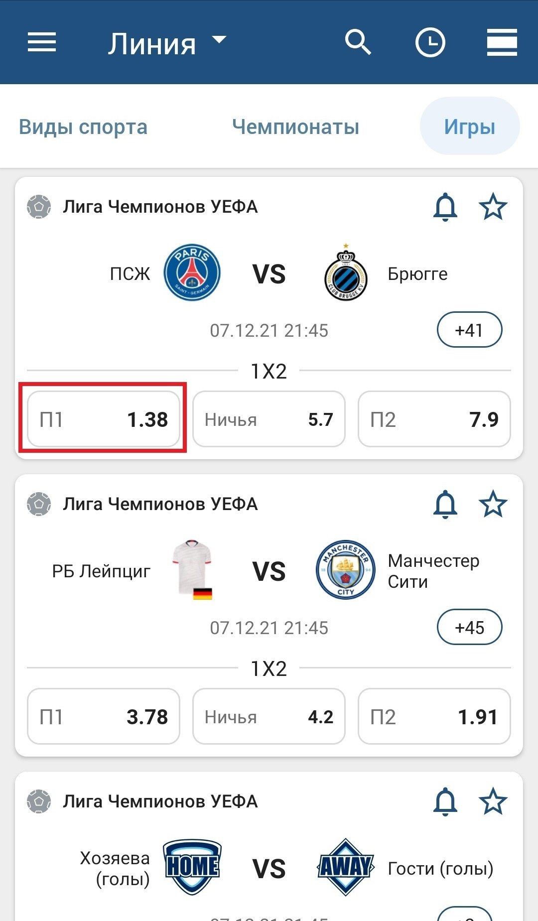 Чтобы выбрать событие, нужно было найти его в разделах «Линия» или LIVE: был фильтр по видам спорта, существовала возможность добавить в «Избранное» и получить уведомление о начале матча.