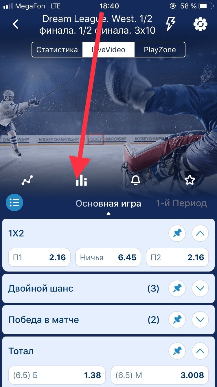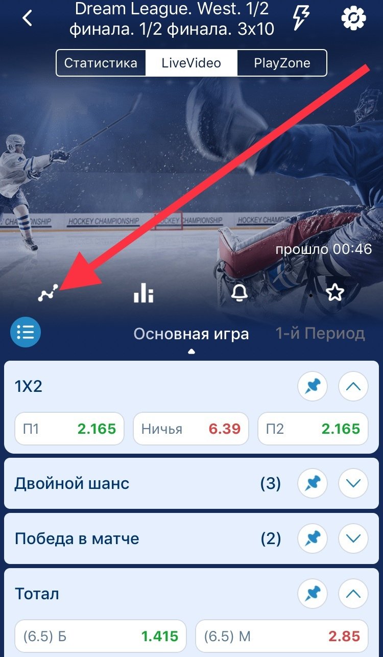 В мобильном приложении вы могли посмотреть движение коэффициентов по событию и расширенную статистику (иконка лесенки).