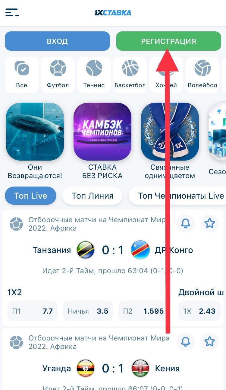Зарегистрироваться в приложении БК «1хСтавка» для iOS можно было через вкладку «Регистрация» на главном экране.