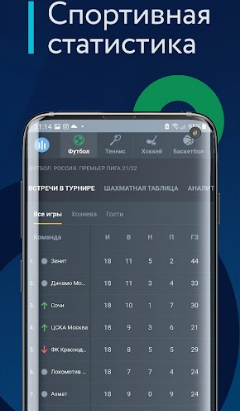 В меню приложения «Балтбет» есть раздел «Статистика». Там можно посмотреть положение клубов в турнирных таблицах, результаты команд и игроков, в матчах каких команд чаще проходят ставки типа «Тотал больше/меньше» и другие полезные тренды.