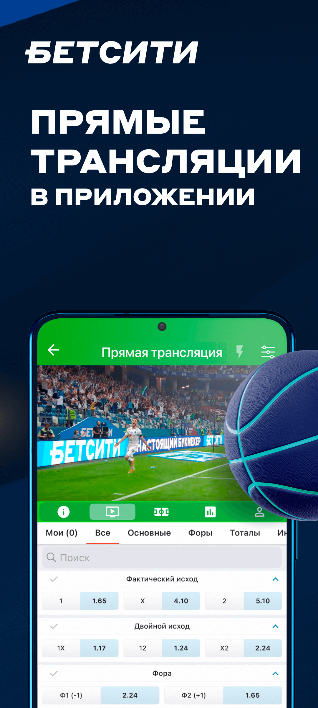 Скачав мобильное приложение, вы сможете смотреть онлайн-трансляции. «Бетсити» показывает топовый европейский футбол, крупные теннисные соревнования, игры НБА, баскетбольные, хоккейные матчи и другие спортивные события. Есть два формата трансляций: видео и графические. Отдельно предусмотрено отображение статистики матча.