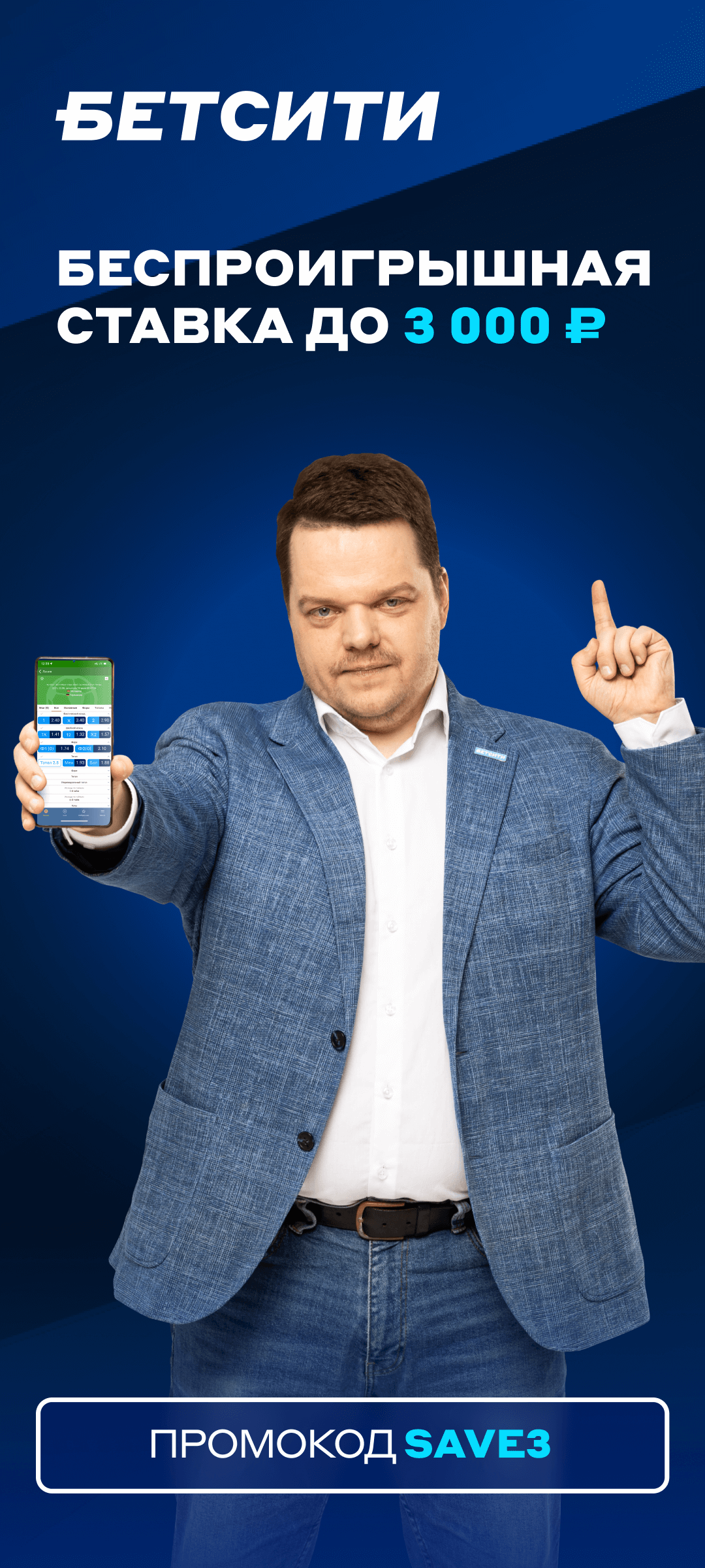Перед регистрацией в мобильном приложении ознакомьтесь с бонусами, которые Betcity предоставляет клиентам. При использовании промокода SAVE3 новые игроки получают страховку ставки до 3000 рублей.