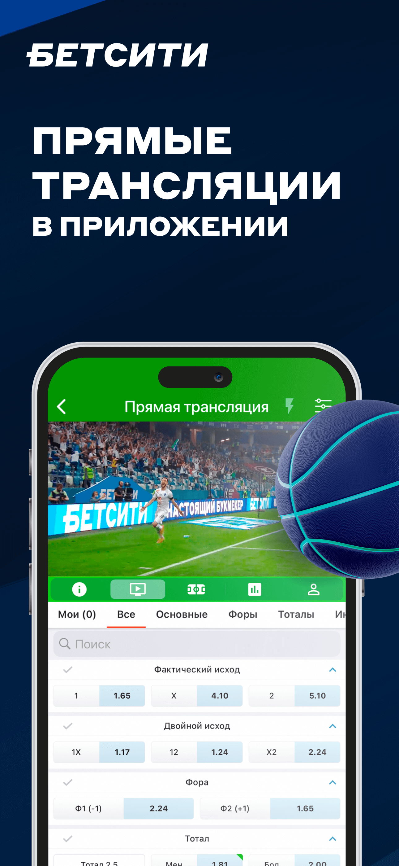 Приложение «Бетсити» для iPhone и iPad практически ничем не уступает интерфейсу десктопной версии сайта. Можно заключать пари и следить за спортивными событиями в режиме Live, а также смотреть видеотрансляции, узнавать результаты, оценивать статистику.
