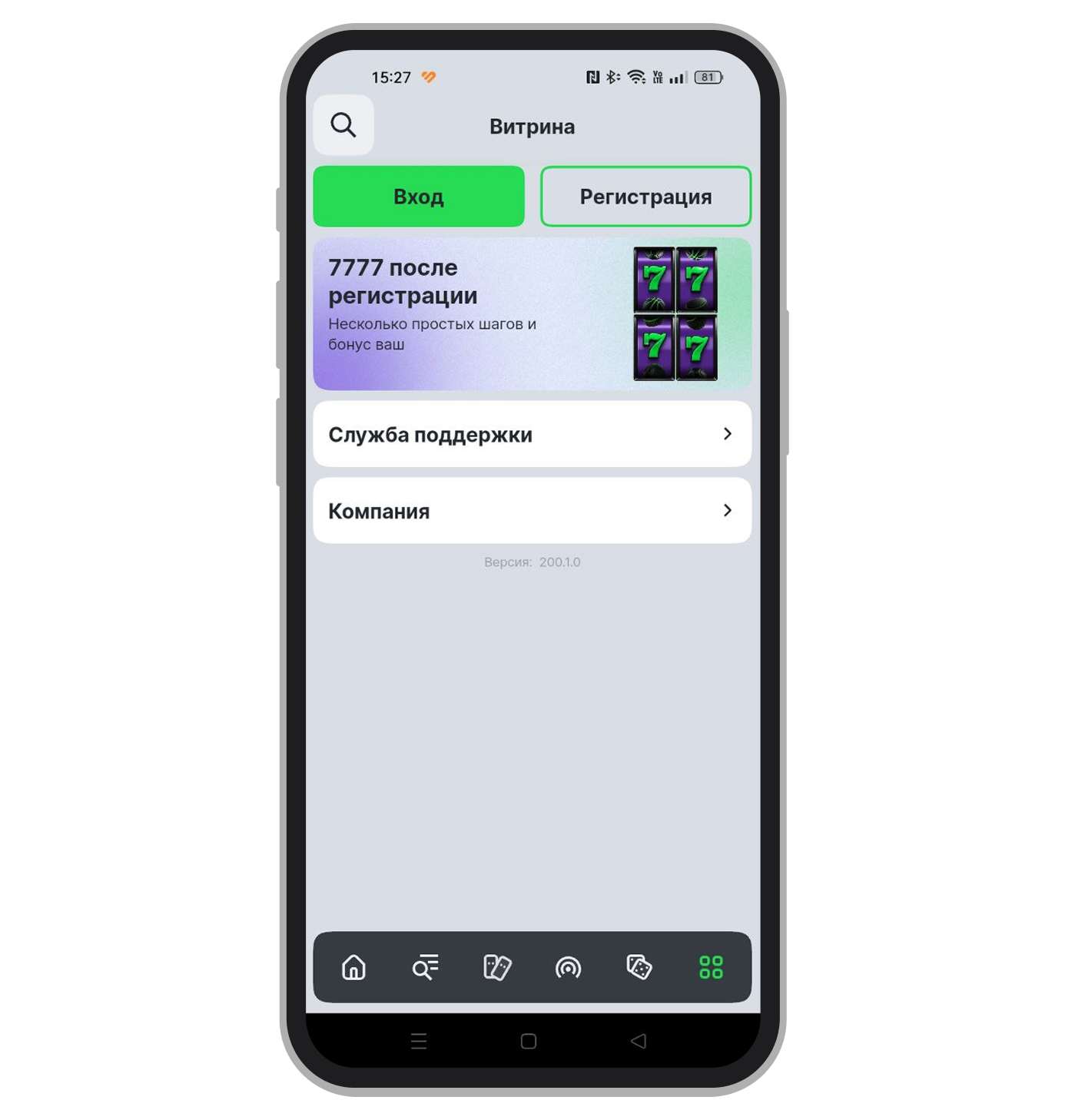 Отдельного бонуса за регистрацию именно в приложении не предусмотрено, но новые пользователи могут получить приветственный фрибет до 7777 рублей: 2222 рубля начисляются после регистрации и первого депозита, а оставшаяся часть суммы — после выполнения условий по ставкам.