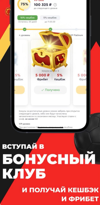 А ещё в приложении БК «Олимп» можно получить фрибет до 5000 рублей по программе лояльности. В зависимости от проставленной за месяц суммы, вам будет присвоен определённый статус, от которого и будет зависеть величина бонуса.