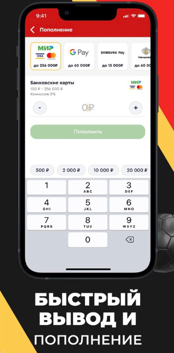 Внести депозит и снять выигрыш можно в разделе «Меню» или тапнув на «плюс» в верхнем правом углу.